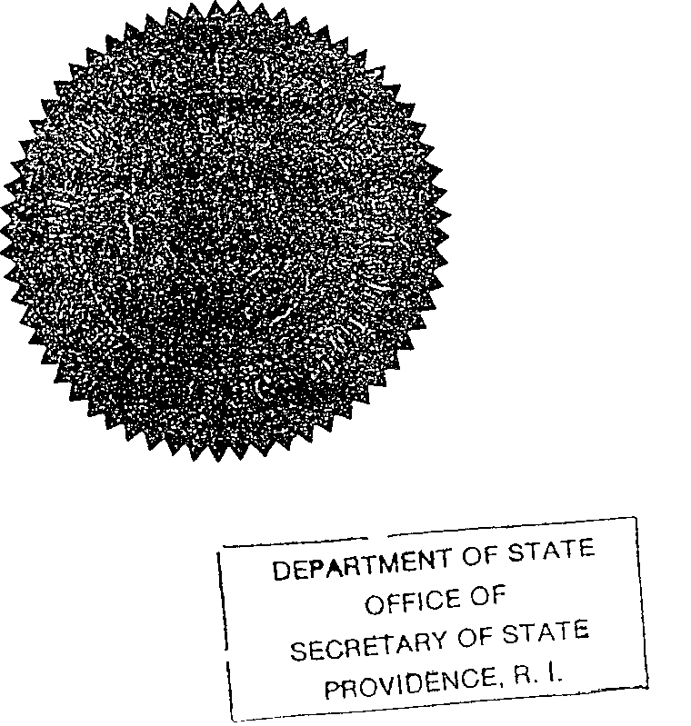 IN TESTIMONY WHEREOF, I have hereunto set my hand and affixed the seal of the State of Rhode Island this thirteenth day of November A.D.,19 92 ________________________________________ Kathleen S Connell Secretary of State By ________________________________________ Pamela L Palumbo Deputy Secretary of State |